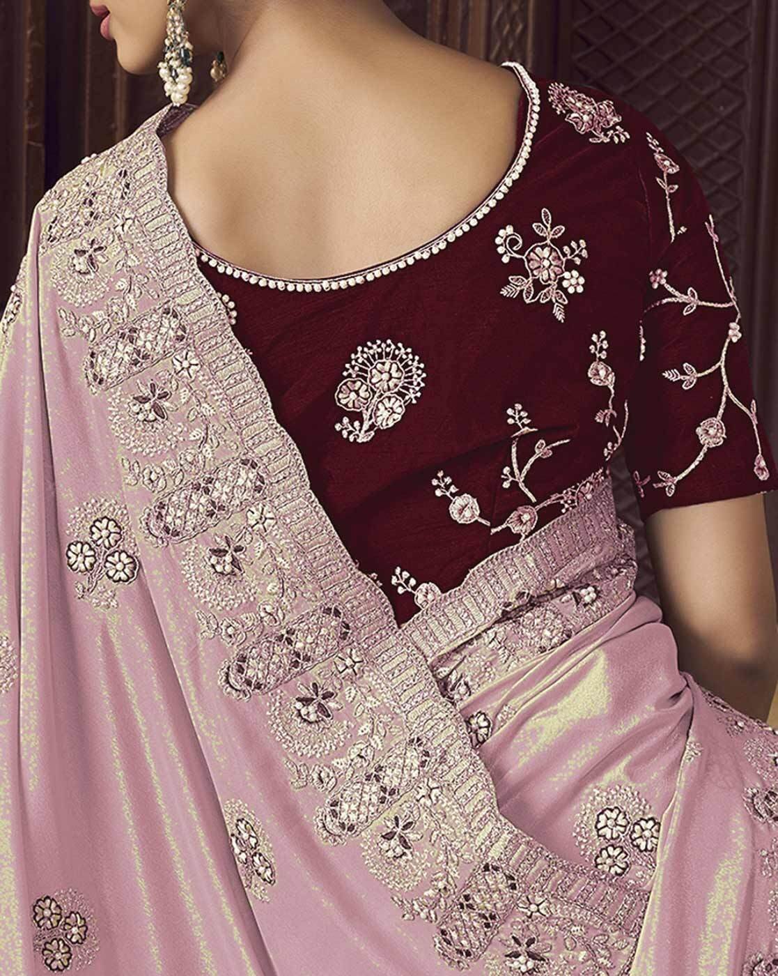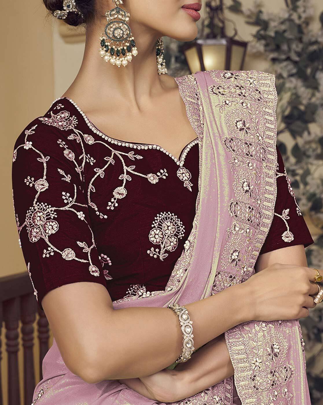 - The last image gives a detailed look of the blouse piece that comes with this saree (The model is wearing a blouse from our in-house wardrobe)